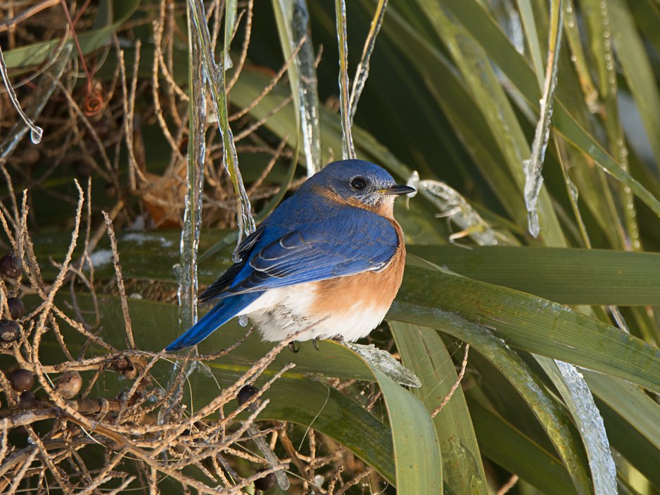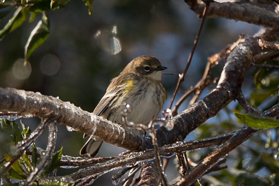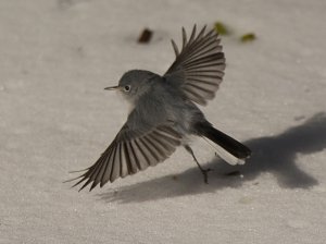 On Thursday, January 4, a day after Snowmageddon 2018, Ed and I went out for a walk around Palmetto Lake and nearby areas. It was a beautiful sunny morning and we found some interesting bird activity. We were surprised to find many birds feeding on the snowy ground. A Blue-gray Gnatcatcher hopped along the snow and fluttered close to the ground, obviously finding some goodies. Nearby a Ruby-crowned Kinglet did the same and a bit down the path, an Eastern Phoebe. In the palmettos, Eastern Bluebirds were beautiful against the icy branches. And in a nearby Wax Myrtle, Yellow-rumps chipped away, perching on an icy limb.