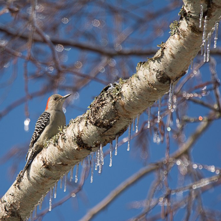 Woodpeckers were bountiful everywhere…Red-bellied, Downy, Yellow-bellied Sapsuckers (making their kitten like “mew”), and Northern Flickers. Seeing them against an icy and snowy background with blue sky was beautiful.