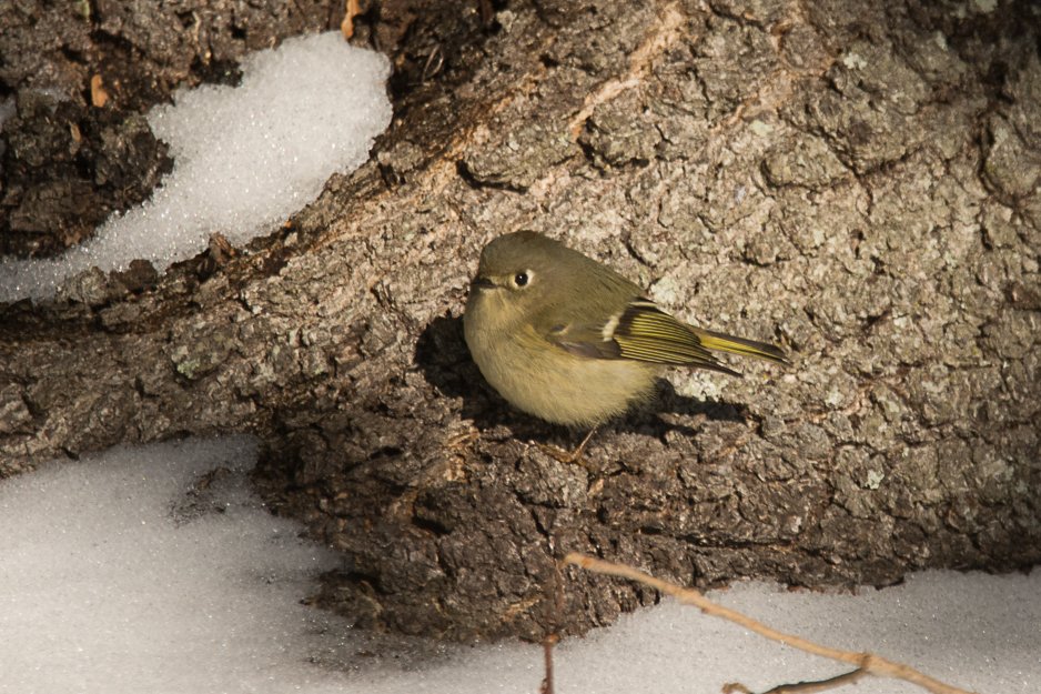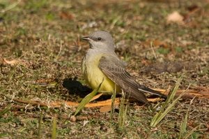 In the afternoon, we returned to the lake and the first bird we saw was a rare Western Kingbird in a patch of grass where the snow had melted. It was hopping along on the ground looking for insects. This bird is considered “rare” for SC by Ebird and it was an exciting sighting, found two days prior by David Gardner near the playground. Obviously it stayed during the snowstorm.