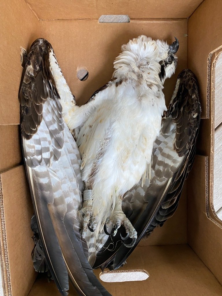 The Center for Birds of Prey did a necropsy on the Osprey.  They did not find a definitive cause of death.  Valerie said the bird was “a little thin” (2.5 on a scale of 4) but she said that was not unusual for Ospreys.  There were some parasites in the lining of the stomach but nothing that would have killed him.  Toxicology reports are pending. He was a male and was “getting ready to breed.”  There were no signs of injury.  Our Osprey’s last meal was a bass.