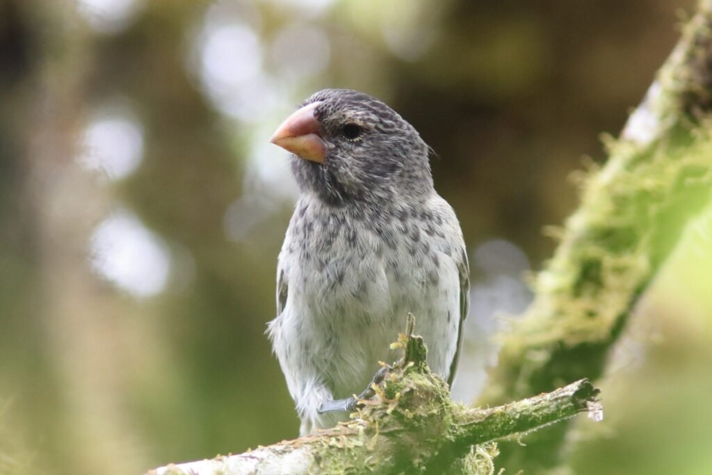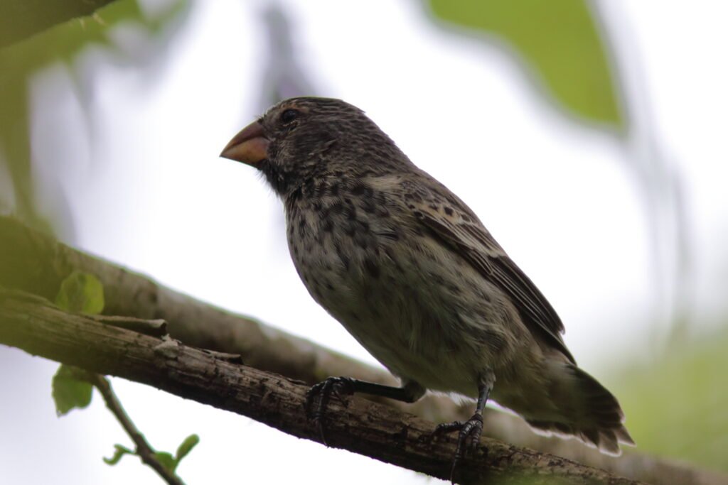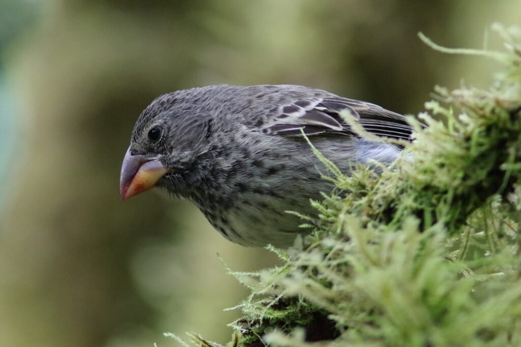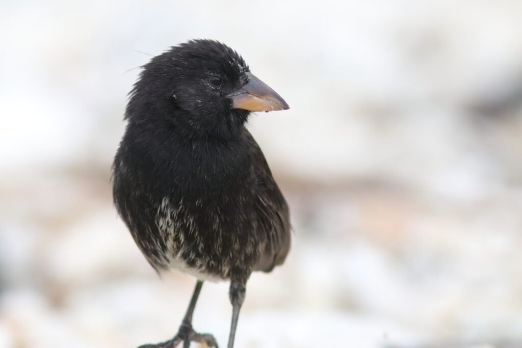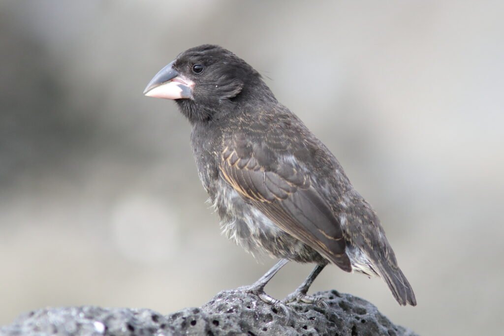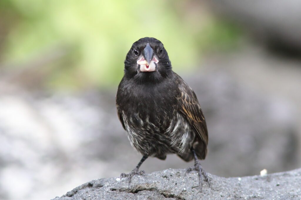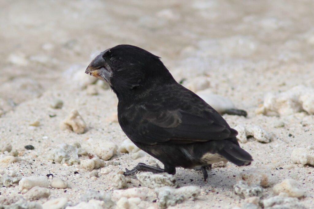 The widespread Medium Ground Finch looks much like the Small Ground-Finch but are larger with a heavier bill. This adaptable bird can be found on many of the islands. Peter and Rosemary Grant studied these birds extensively. Jonathan Weiner ‘s Pulitzer Prize winning book, The Beak of the Finch details how the Grants discovered that with the vacillating El Niño and La Niña weather events, this species’ beak grew or shrank so it could consume the available seeds.