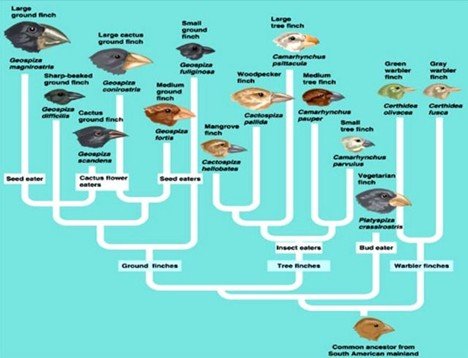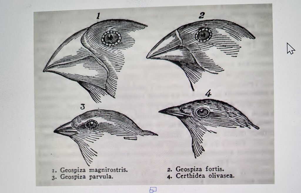 “Seeing this gradation and diversity of structure in one small, intimately related group of birds, one might really fancy that from an original paucity of birds in this archipelago, one species had been taken and modified for different ends.” https://www.gutenberg.org/cache/epub/944/pg944-images.html#link2HCH0017