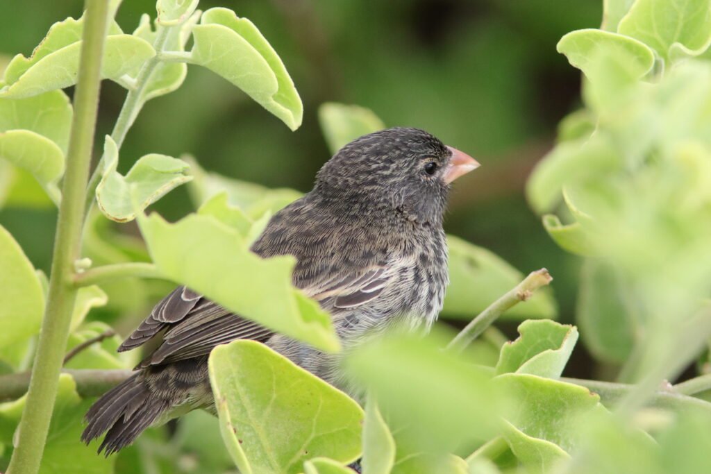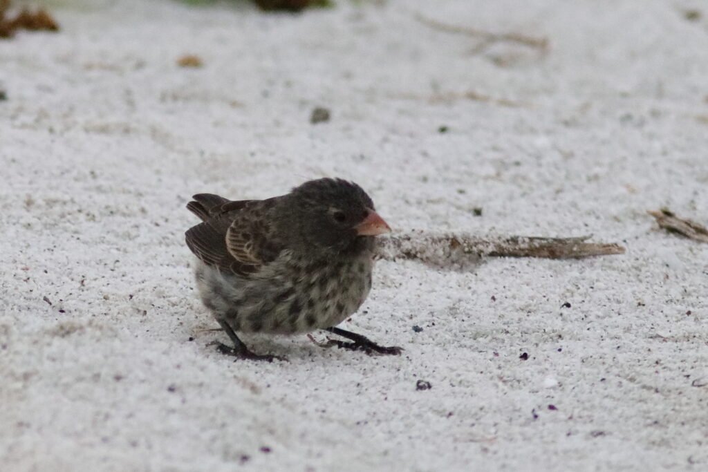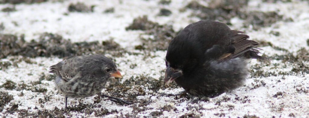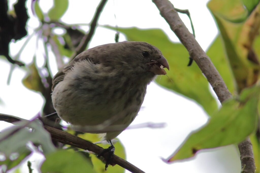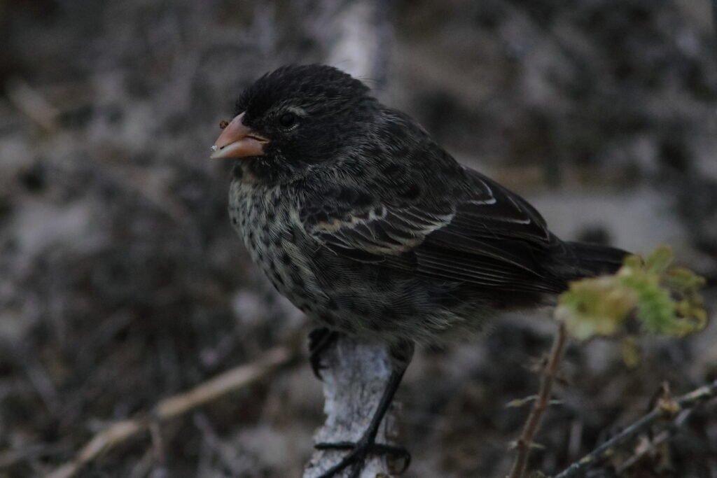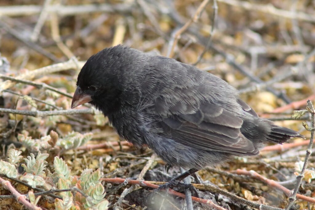 All the images below are Small Gound Finches. These common birds appear on most islands and adapt to a wide array of habitats and conditions much like a House Sparrow. As a small bird with a “small” bill, they feed on the smaller seeds which can be abundant during the El Niño years (high rainfall). They suffer in the La Niña years of low rainfall as the seeds of the plants that survived were larger and harder.