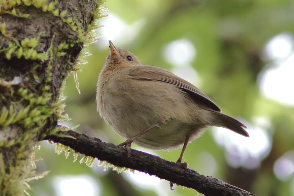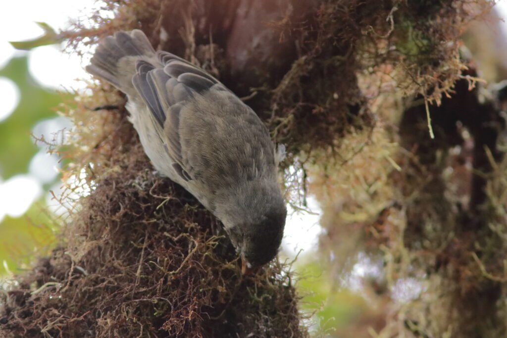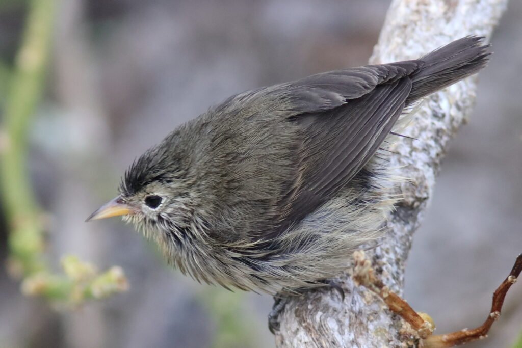 The Grey Warbler Finch is also a tiny bird with a thin, sharp beak. Until recently (around 2008), it was considered to be the same species as the Green Warbler Finch. While it occurs on many of the same islands as the Green Warbler-Finch, it prefers drier habitats. More common than the Green Warbler-Finch, this species can be further split into eight subspecies. Most subspecies can be found on only one island.