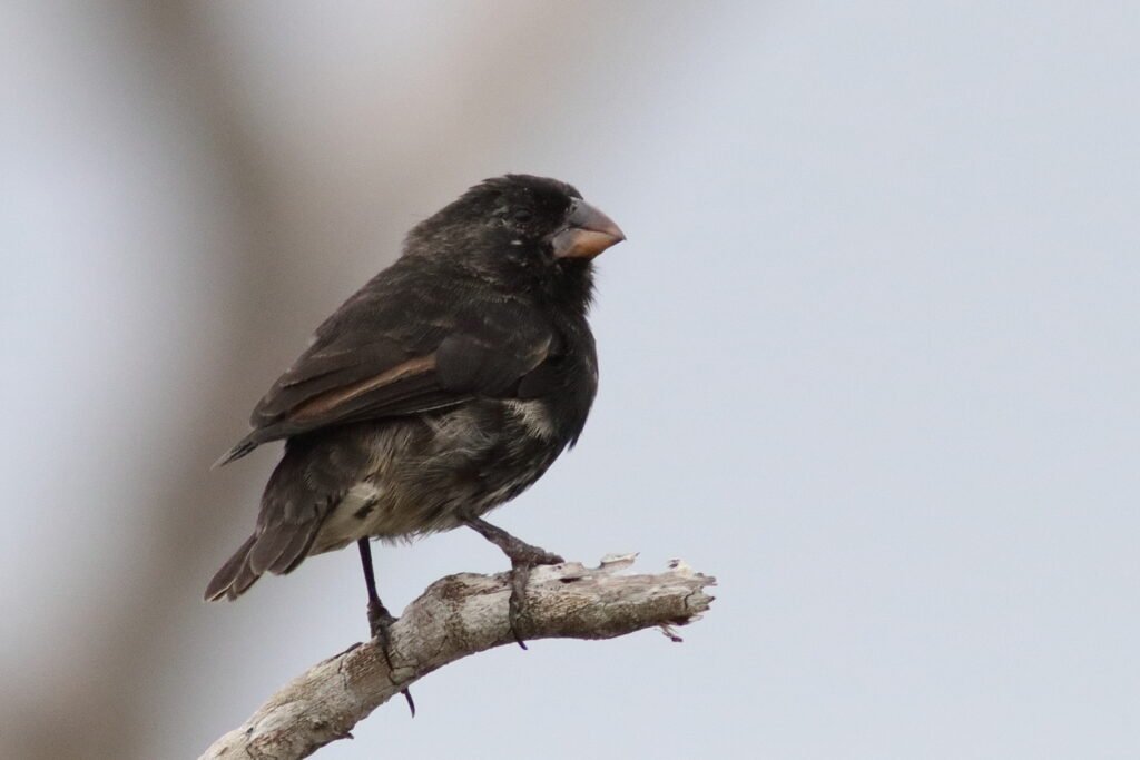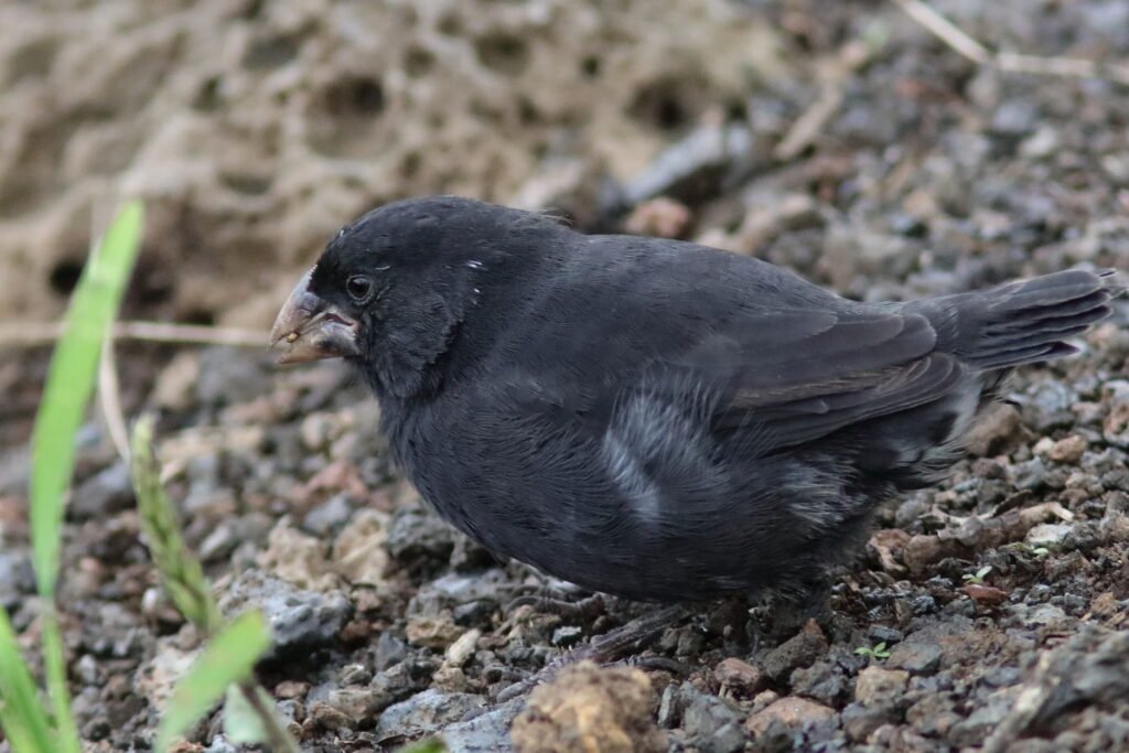 By now, you have intuited that whoever bestowed the common name to the Darwin Finches was not very creative. Large Ground-Finch lives up to its name. This large-billed bird can eat the seeds with the strongest covers. It prefers drier habitats where the plants produce hard coated seeds.