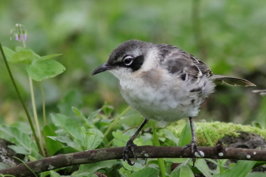 I did not get a picture of the San Cristobol Mockingbird unfortunately. It is smaller than the Española Mockingbird, but larger than the Galapagos Mockingbird. The birds overall color is daker than the Galapagos Mockingbird. The black is behind the eye as opposed to a mask. This species is only found on San Cristolbal Island.