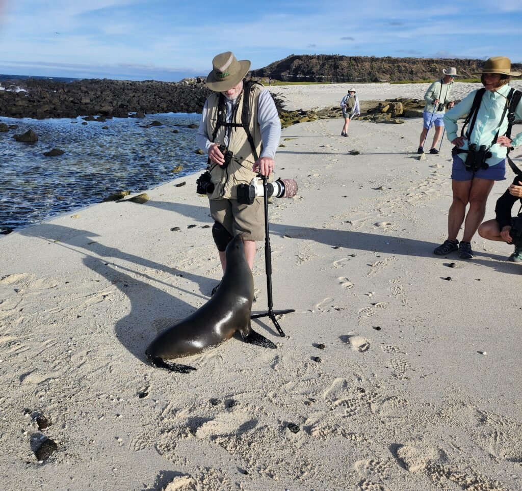 As stated in an earlier blog, the Galapagos Islands host 250 vascular plants, 20 reptiles, three land mammals, six seabirds, 22 land birds, two marine mammals, 86 fish, and over 1,200 terrestrial invertebrates which are endemic species. Don’t worry, I will not share all of them. Our trip leader, Kevin Loughlin is the co-author along with John C. Kricher of the book Galapagos: A Natural History Second Edition. He is well versed in the natural history of the islands and thoroughly enjoyed sharing many (61) flower species with Eileen as most everyone else wanted to see the animals.