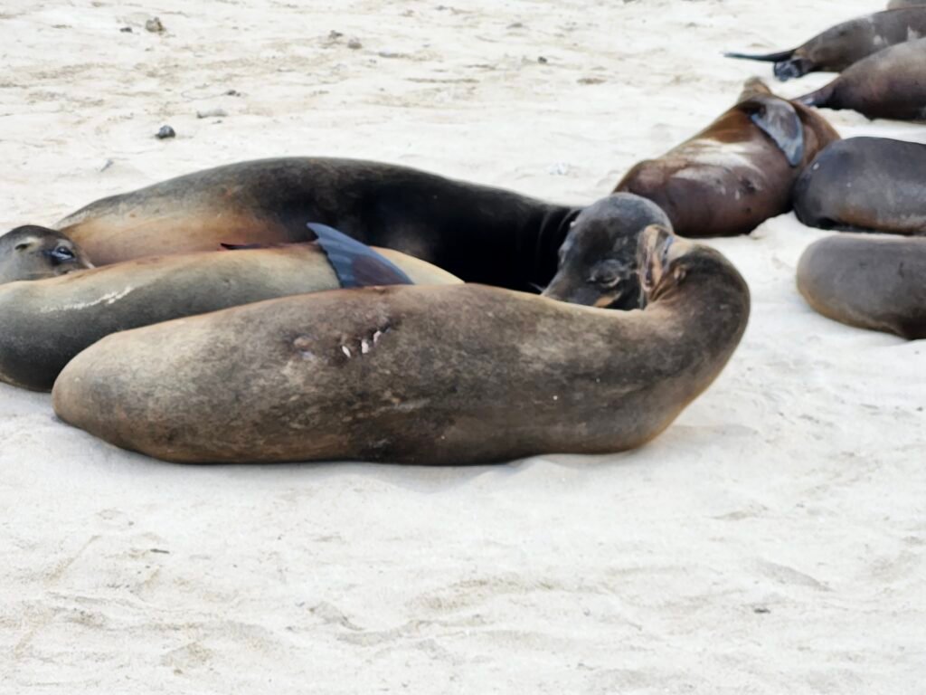 We did get lots of close up looks at the Galapagos Sea Lion and a few distant looks at the Galapagos Fur Seal. The Seal Lions lounged around on many of the beaches we visited, refusing to move as we walk by them. The one in this image shows shark teeth marks on its back.