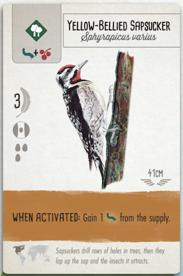 - Gain food via a birdfeeder dice tower and activate forest bird powers