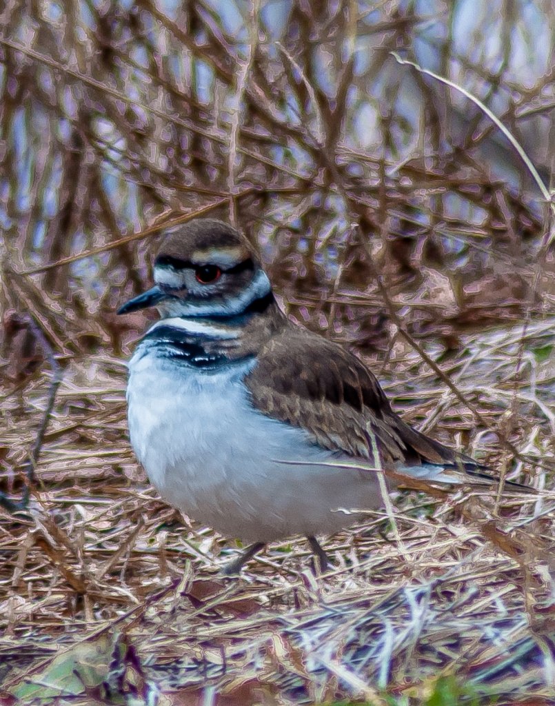 I was birding at a horse pasture and was amazed to discover birds I had been searching for at the shore. They were Killdeer. I discovered that the Killdeer are the least water dependent of all shorebirds and can often be seen in farm fields where they can easily find insects. Killdeer also eat snails, crayfish, grasshoppers, beetles and worms.