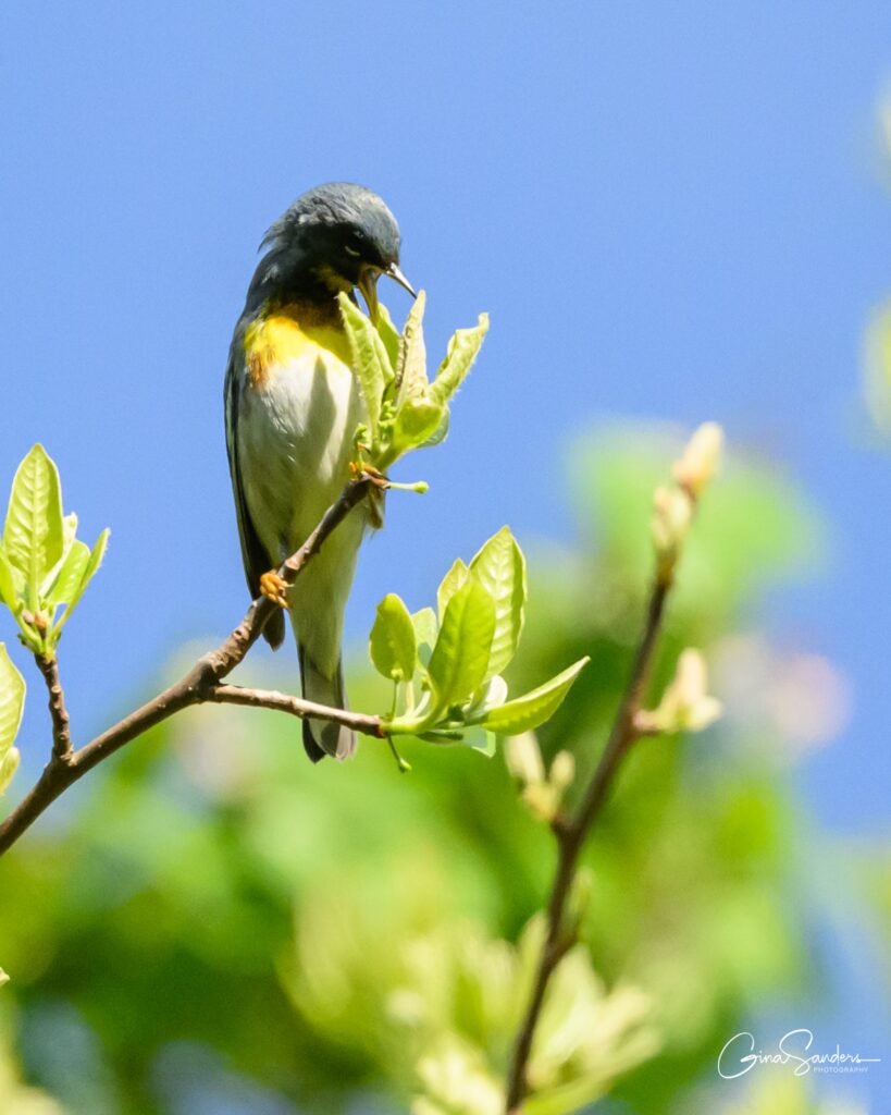 If you read our recent blog about spring arriving birds, you already read a little bit about Northern Parulas. When we hear their distinctive song we know spring is here! This weekend, all around the island, I heard a few Northern Parulas – they have arrived!