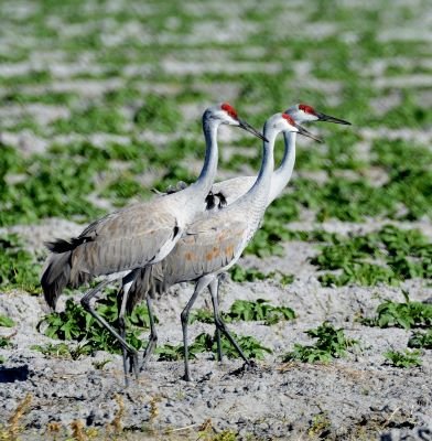 As we drove state roads between Lakeland and Bradington, we finally saw a “Florida Bird”… a Sandhill Crane. On the return trip, we stopped for pictures of flocks of these large noisy birds. We also saw lots of Cattle Egrets, White Ibis and of course Turkey Vultures.