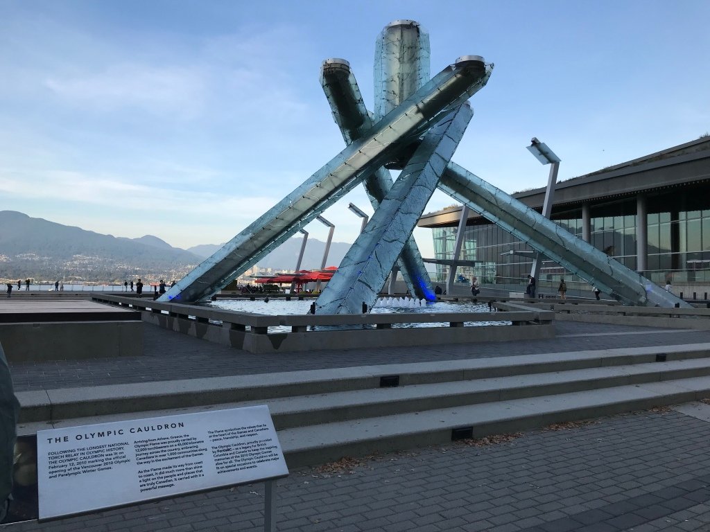 After breakfast we went for a long walk along the waterfront. Vancouver Harbor is a combination of high-rises, hotels and restaurants, with a great bike trail and walking area along the water’s edge. Remnants of the 2010 Olympics are everywhere. Canada Place, with its distinctive sails, is the heart of the tourist area and includes the Cruise Terminal. The Olympic cauldron still stands and is a popular selfie stop.