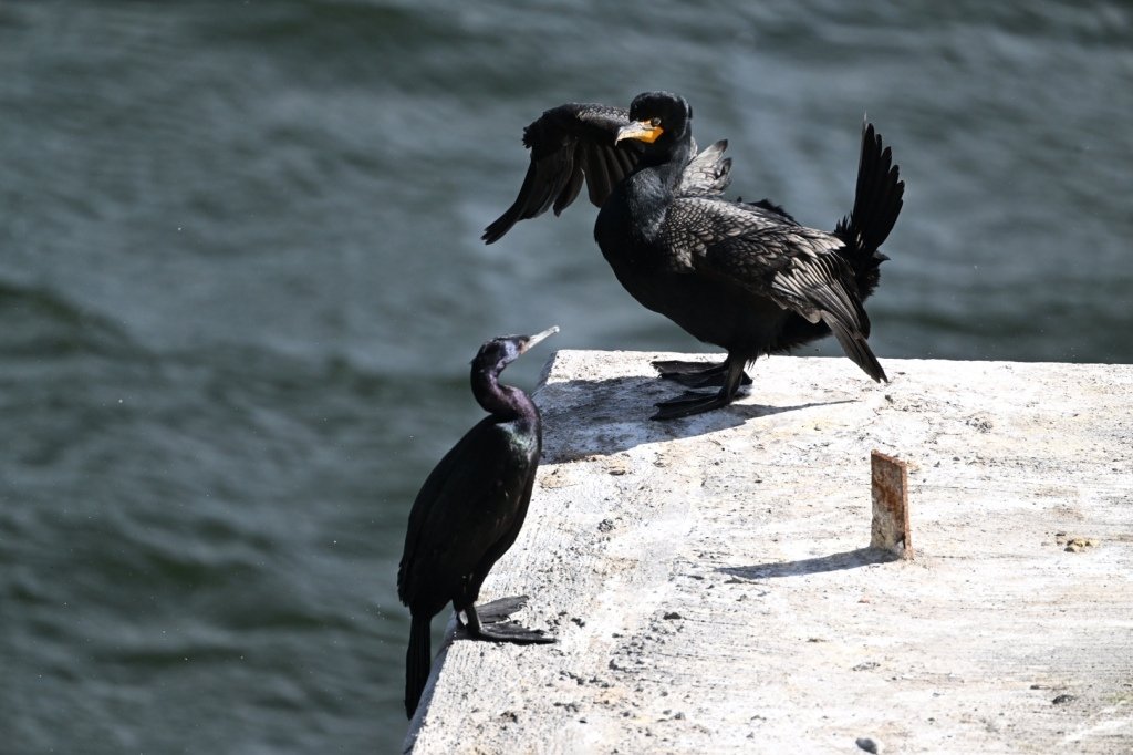 Our walk took us past busy Sea Plane docks, beautiful green spaces very popular with dog owners, restaurants, shops, and a very nice marina. Along the way I heard White-crowned Sparrows, Song Sparrows, Black-Capped Chickadees, and the occasional American Robin. Down by the the water, sitting on docks and the harbor wall, were Double-crested Cormorants. And a smaller Cormorant I didn’t recognize. Once again, Merlin and Sibley’s to the rescue. These were Pelagic Cormorants, 25” to 30” in height, with a habitat ranging from the Bering Sea south to northern Baja California.