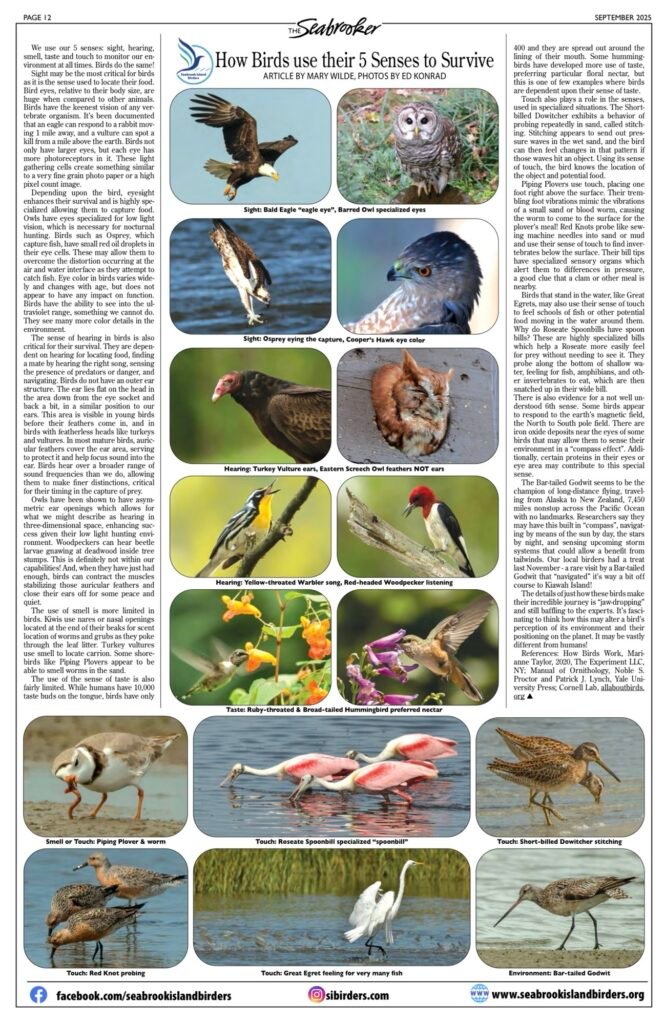 In case you don’t receive it, or haven’t had a chance to read it yet, we hope you will enjoy The Seabrooker’s September 2025 SIB article. Seabrook Island Birders (SIB) contributed a full page article on Page 12!