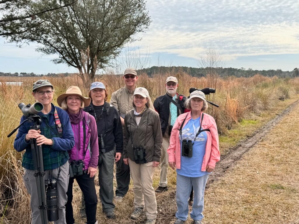 Meet new and “old” friends while learning about the birds on our island and South Carolina by joining us on a bird walk.  Walks are generally 1 1/2 – 3 hours in length with various degrees of walking.  In some cases, we bird by driving our cars and stopping (like on Jenkins Point and Bear Island WMA).  In other cases, we use golf carts on the golf course so it is accessible for all.