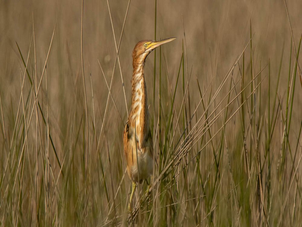 Between trips to North Beach, we headed down Route 17 to favorite spots – Bear Island and Donnelly WMAs. The targets were Swallow-tailed and Mississippi Kites that are seen this time of year. These graceful birds soar and swoop very fast in search of bugs, so photographing them is a real challenge, I wasn’t pleased with this trip’s quality, but the photos show the “moment” of the kites catching then gobbling insects while in flight. A terrific surprise at Bear Island was coming upon a Least Bittern sitting up on the marsh grass, and “posing” for us for a long time. This elusive bird usually skulks deep in the grass, it’s rare to get looks like this!